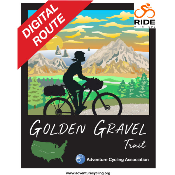 Created in 2026 to celebrate Adventure Cycling’s 50th anniversary, the Golden Gravel Trail is a rugged bikepacking route linking remote backroads, high mountain passes, desert basins, and quiet rural landscapes across eight states in the American West. Stretching from the Mississippi River to the Pacific Ocean, it offers the perfect adventure for riders craving long horizons, quiet solitude, small-town hospitality, and an unforgettable journey.